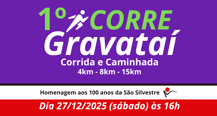 1a. EDIÇÃO DO CORREGRAVATAI - CORRIDA E CAMINHADA - Homenagem aos 100 anos da São SILVESTRE Acesse