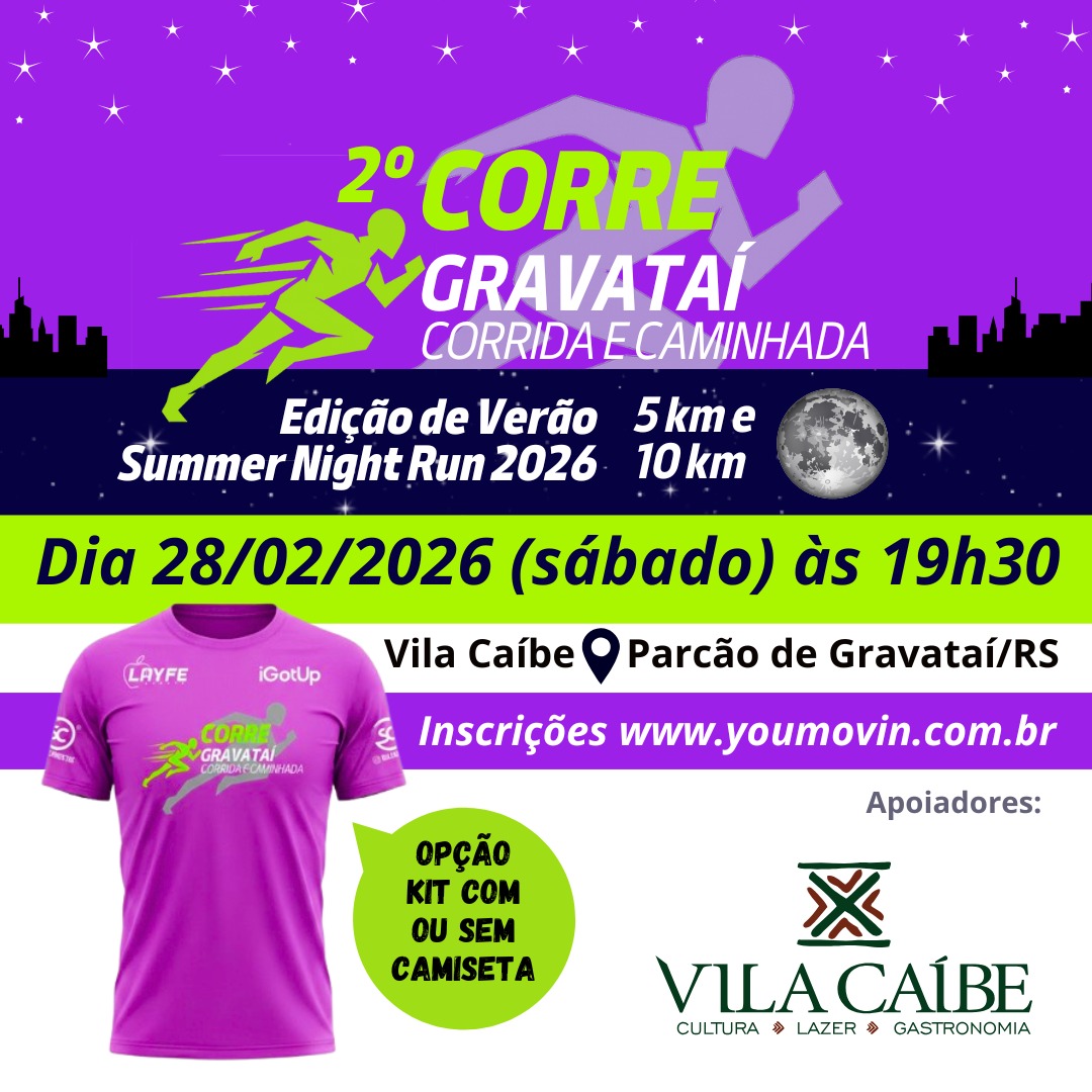 2ª CORREGRAVATAI - CORRIDA E CAMINHADA - EDICAO DE VERAO - SUMMER NIGHT RUN 2026 Acesse