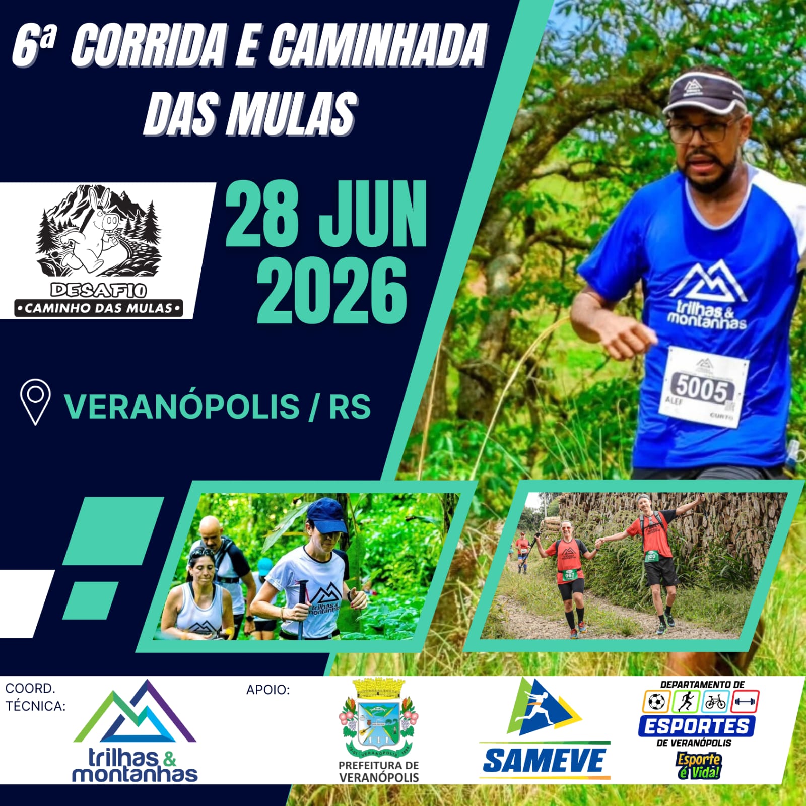 - Caminhada e Corrida curta 5KM a 8KM e Corrida media/longa 10KM a 16KM