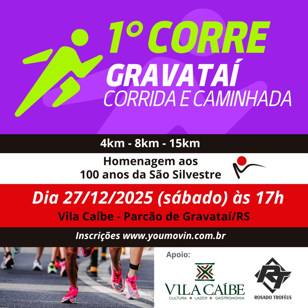 1a. EDIÇÃO DO CORREGRAVATAI - CORRIDA E CAMINHADA - Homenagem aos 100 anos da São SILVESTRE Acesse